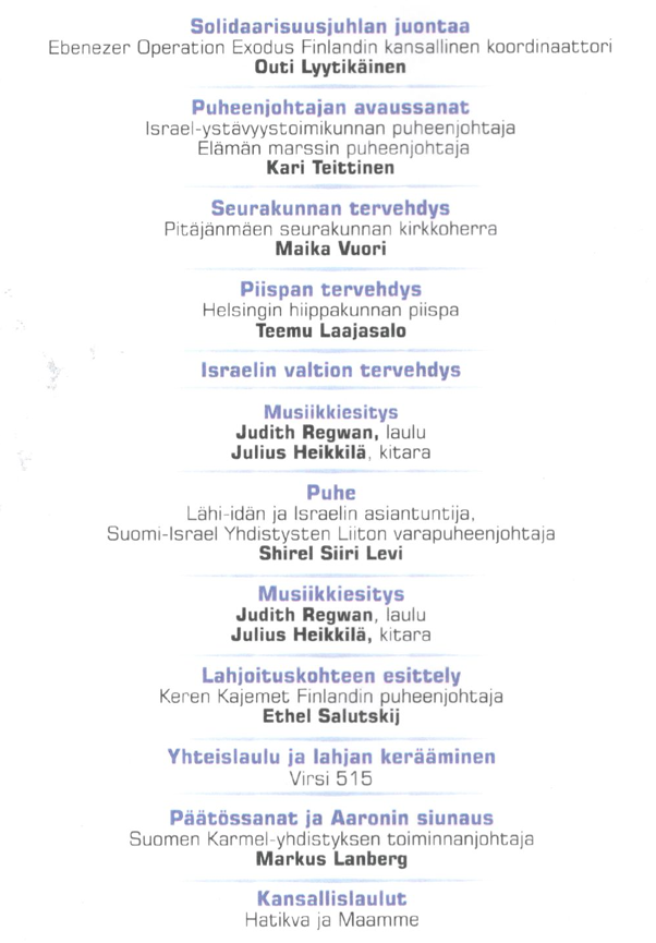 Vaikuttava Israel-solidaarisuusjuhla pidettiin sunnuntaina 26.10. Pitäjänmäen kirkossa.
